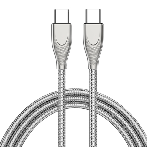 Câble USB-C en acier inoxydable tressé à charge rapide durable 5A avec alliage de zinc compatible avec les appareils IOS